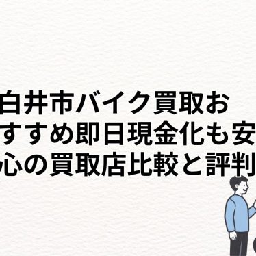 バイクの売却を検討する際、どの業者に依頼すればよいか迷うことはありませんか。大切に乗ってきた愛車だからこそ、専門知識が豊富で信頼できる業者に、適正な価格で買い取ってもらいたいものです。白井市には、高額査定やスピーディーな即日対応を強みとする...