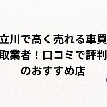 立川市で愛車の売却を検討しているものの、どの業者に依頼すれば最も高く、そして安心して任せられるのか、判断に迷うことはありませんか。車買取業者はそれぞれに強みが異なり、査定額やサービス内容にも差があるため、最適な一社を見つけるには情報収集が欠...