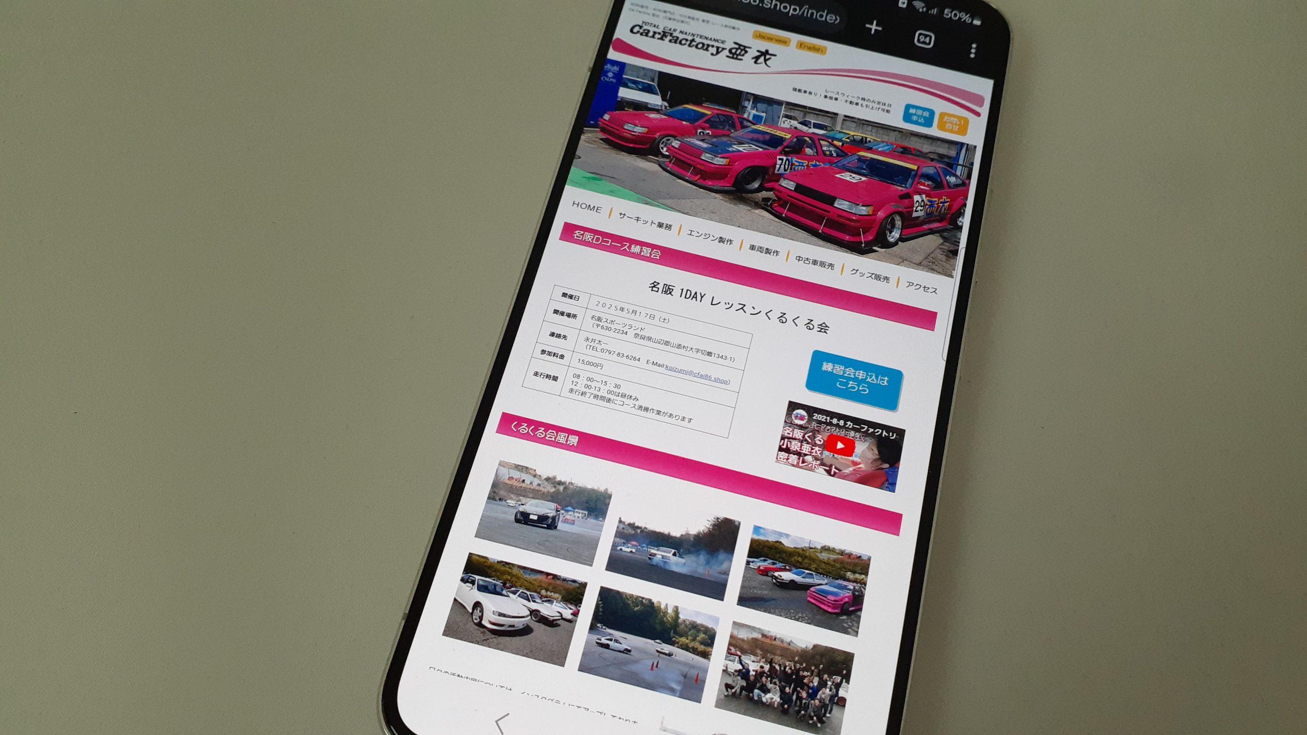 - 中古車販売・修理・カスタムに加え、サーキット走行会も主催し、クルマ好きの交流の場を提供。
